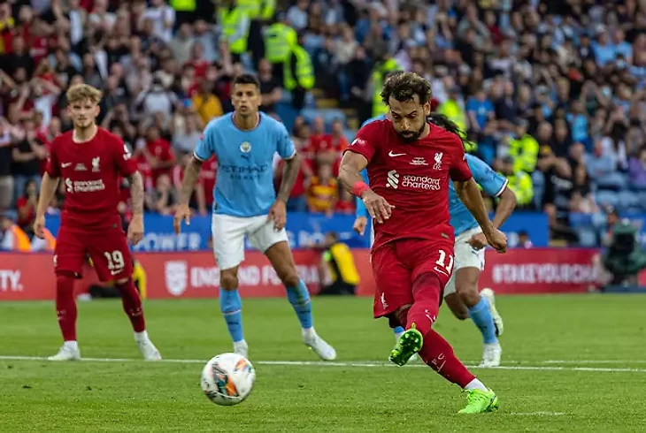 В субботу в матче за Суперкубок Англии «Ливерпуль» победил «Манчестер Сити» со счетом 3:1. Второй гол забил Салах с пенальти, и на видео этого момента болельщики заметили кое-что любопытное.