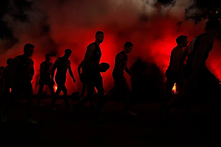 24 июля. Снова киношный выход на поле в австралийском футболе. На этот раз сквозь шум толпы и огонь пробегают игроки клуба «Коллингвуд».