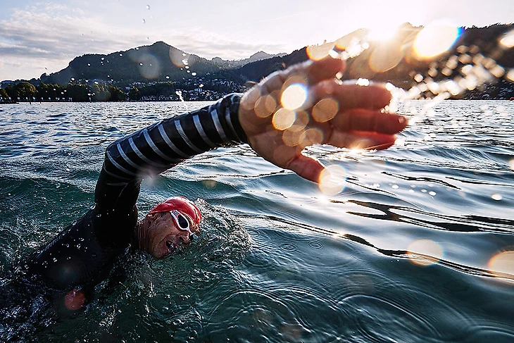 10 июля. Заплыв IRONMAN в швейцарском Берне. Дайте пять – и он поплывет дальше.