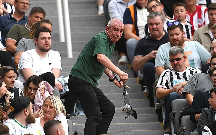 30 июля. Не факт, что здесь много красивого, но фотограф поймал необычный эпизод: фанат «Ньюкасла» провожает в последний путь голубя, который, как сообщает фотоагентство Getty Images, «сорвался с балки во время матча «Ньюкасла» и «Атлетика».