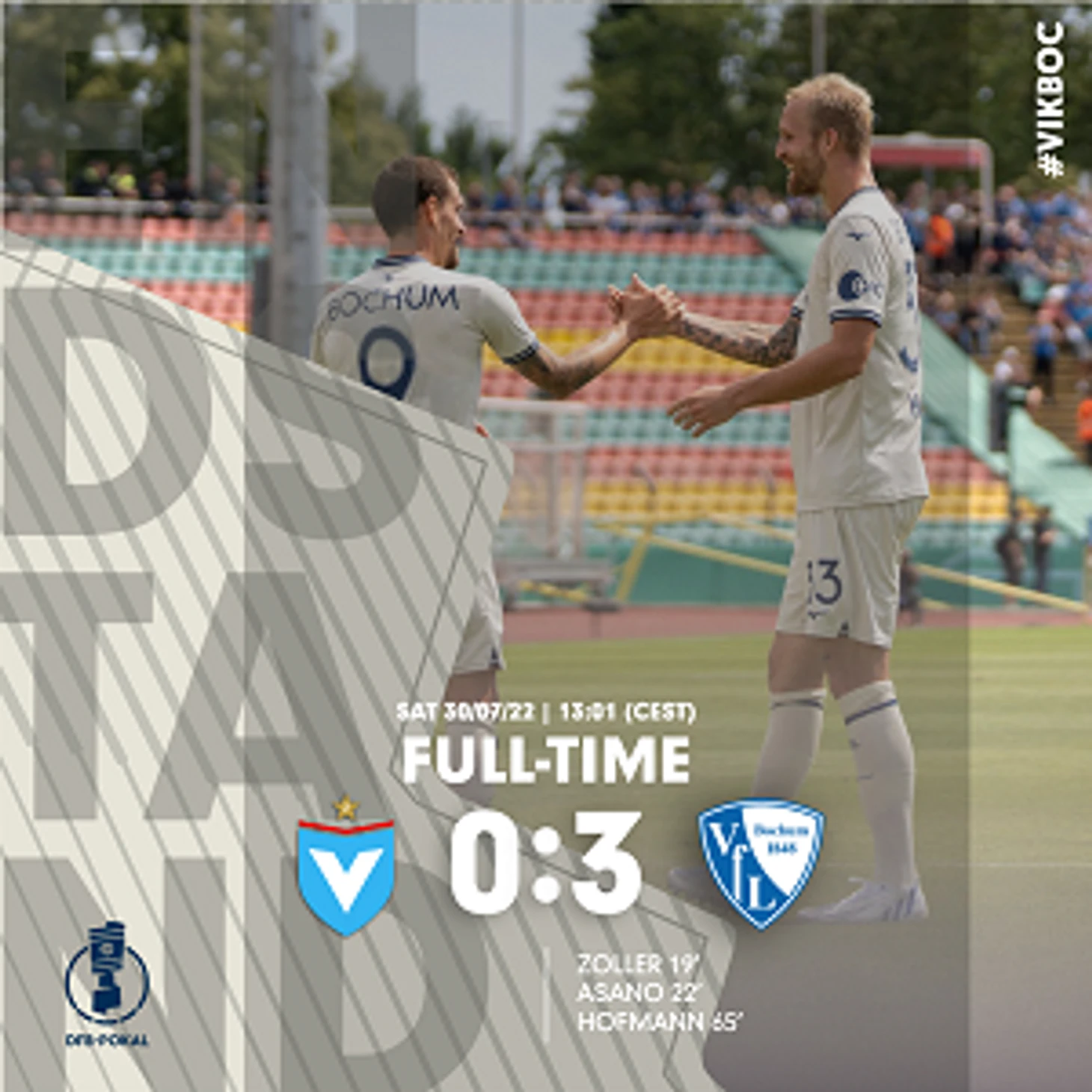 «Бохуму» в соперники досталась команда северо-восточной региональной лиги. Больших трудностей бохумцы не испытали, хотя в первые 15 минут соперника пришлось изучать. Счет голам гостей на 18-й минуте начал Цоллер – мощнейшим ударом с центра штрафной отправил мяч в сетку. Ещё через несколько минут Осано ловко проскочил мимо защитников берлинцев и сделал счет 2:0 в пользу «Бохума». До конца тайма команды имели моменты, однако реализовать их не удалось, а хозяева даже не попали в створ.