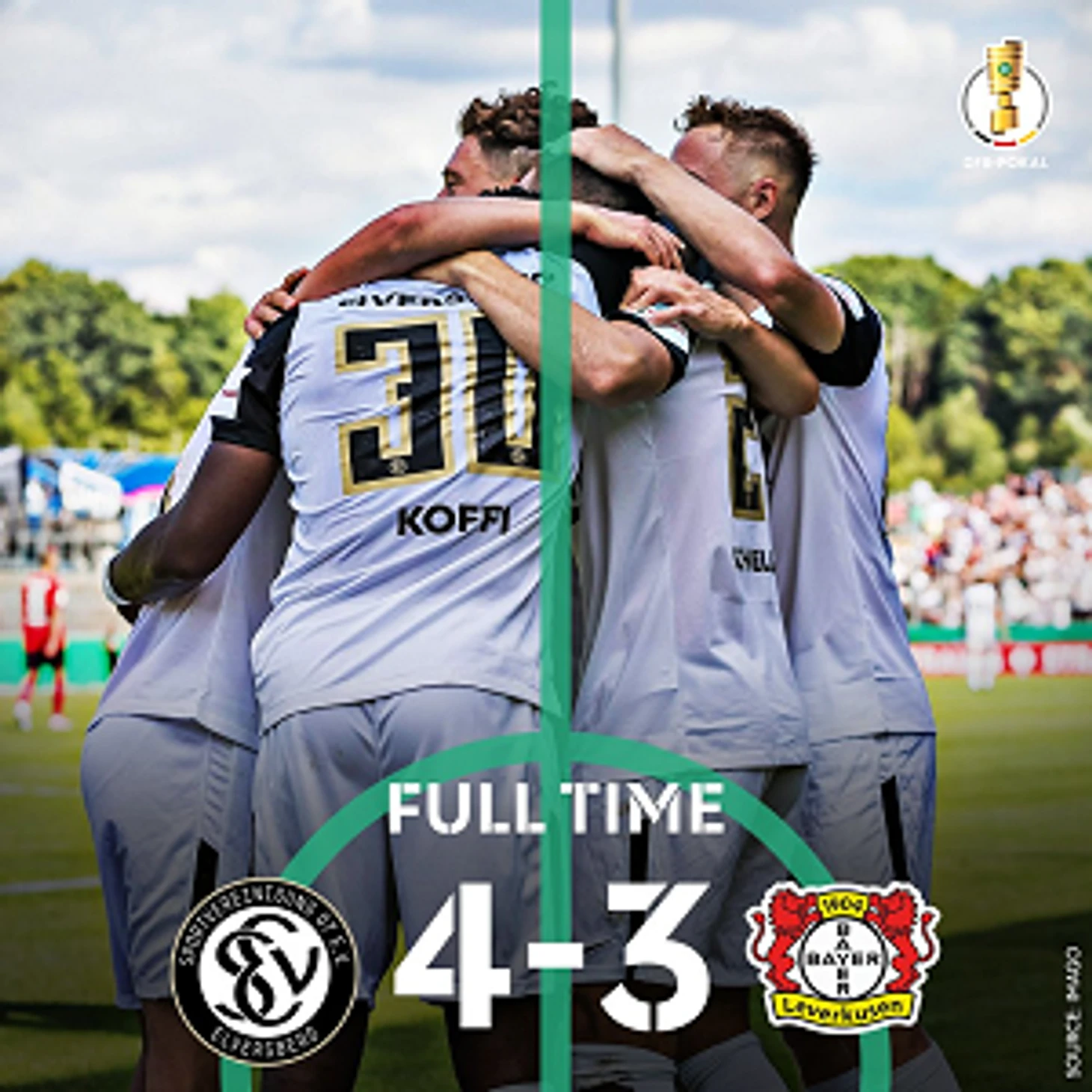 Леверкузенский «Байер» проиграл футбольному клубу «Эльверсберг» со счетом 3:4 в первом раунде Кубка Германии.