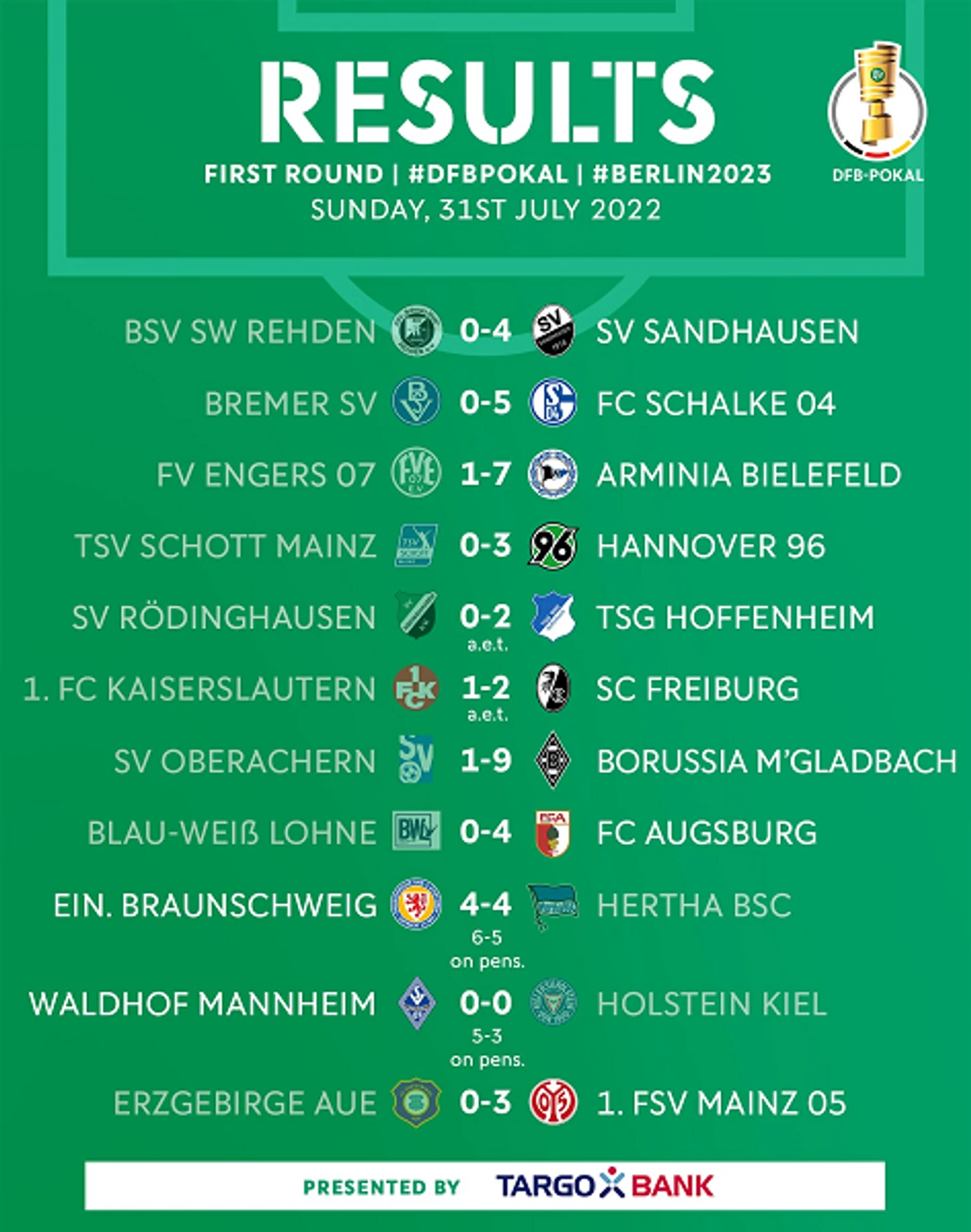 К сожалению, клуб из пятого немецкого дивизиона не смог противостоять недавнему участнику первой лиги, слишком большая разница в классе. «Арминия» продолжает свое участие в турнире.