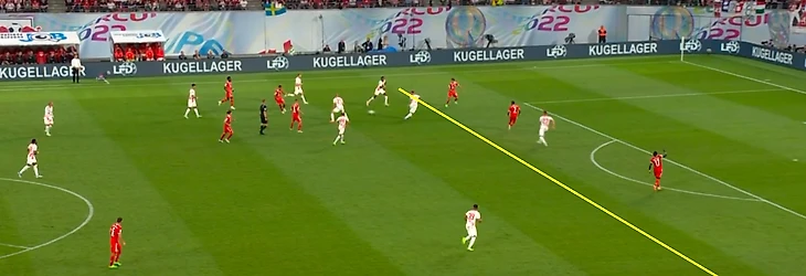 Из-за численного преимущества Лейпцига и избежания уже непоправимых действий соперника приходил Киммих во время аутов, а его место уже занимал Забитцер.