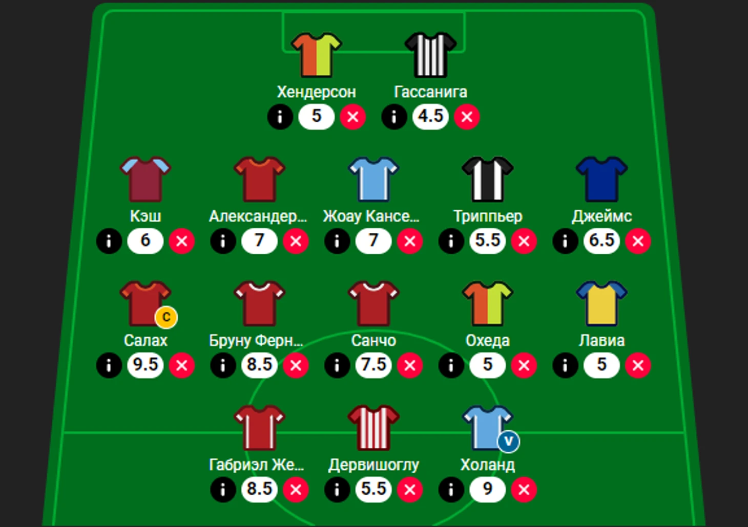 Как вы будете собирать полузащиту – решать вам, моя полузащита в следующем составе: Салах, Бруну, Санчо + две затычки стоимостью 10 млн (Охеда + Лавиа)