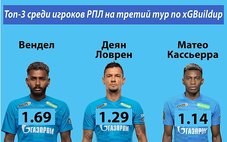 Здесь без неожиданностей: в топе лидеры команд, показавших наиболее результативную игру в туре, но даже здесь бросаются в глаза цифры Промеса по xGChain. Напоминаем, что мы берем усредненное значение по туру.