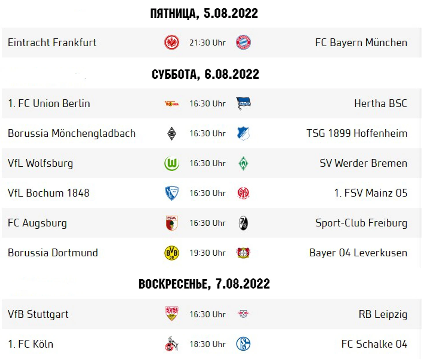 Бундеслига возвращается, да ещё каким матчем! В пятницу друг с другом сыграют «Бавария» и обладатель Лиги Европы «Айнтрахт», а в субботу зрителей ждут не менее интересные встречи.