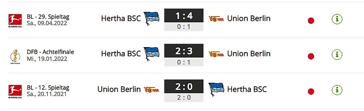 В личных встречах «Унион» чаще обыгрывал «Герту»: «железные» побеждали пять раз, «Герта» обыгрывала соперника трижды, три раза команды согласились на ничью.