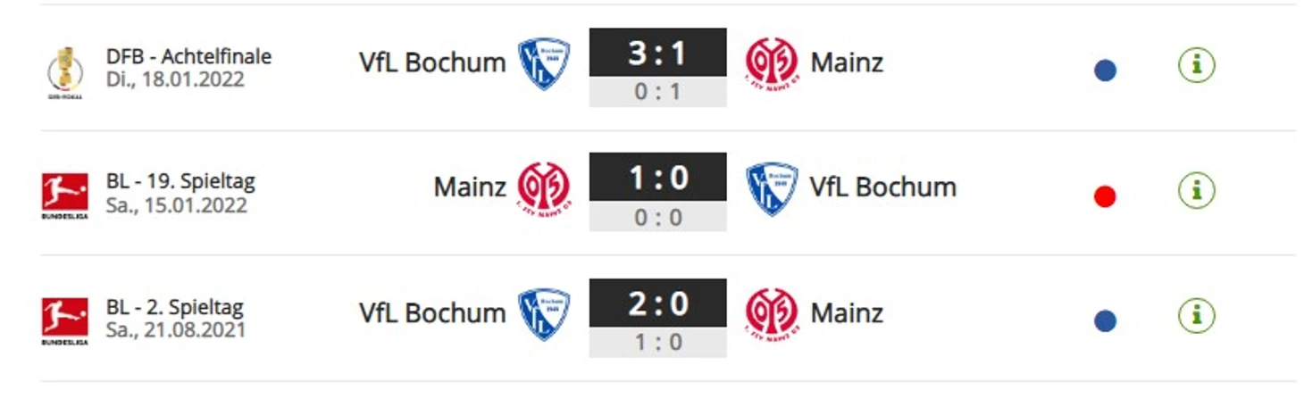 В прошлом сезоне «Бохум» обыграл «Майнц» со счётом 2:0 – это была единственная победа клуба в восьми встречах с «карнавальщиками» в рамках Бундеслиги.