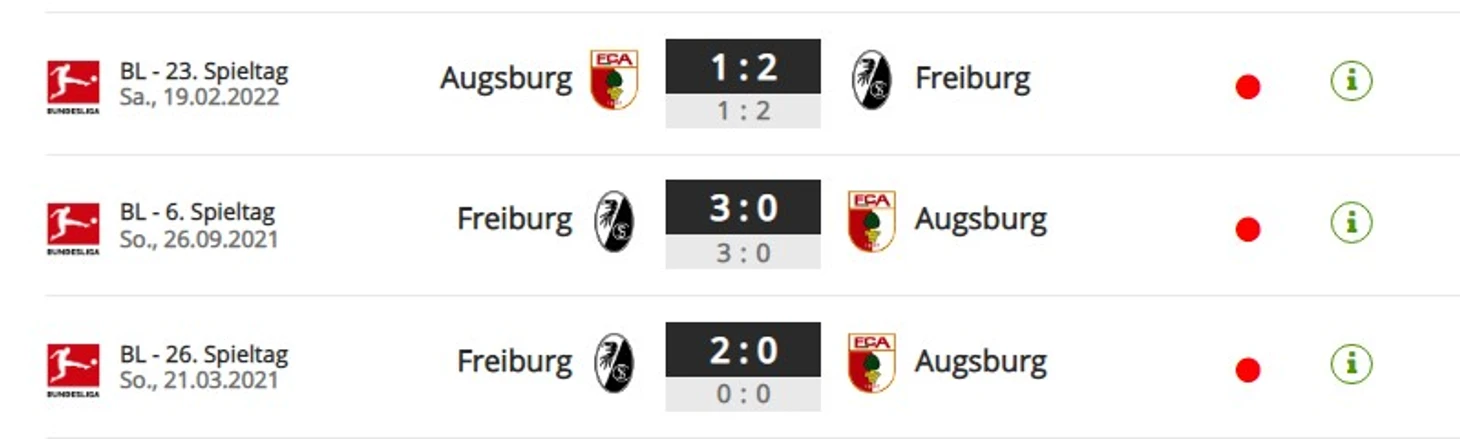 «Фрайбург» остался непобежденным в семи играх против «Аугсбурга» в Бундеслиге. В последних трёх встречах клубов победу одерживал именно «Фрайбург».