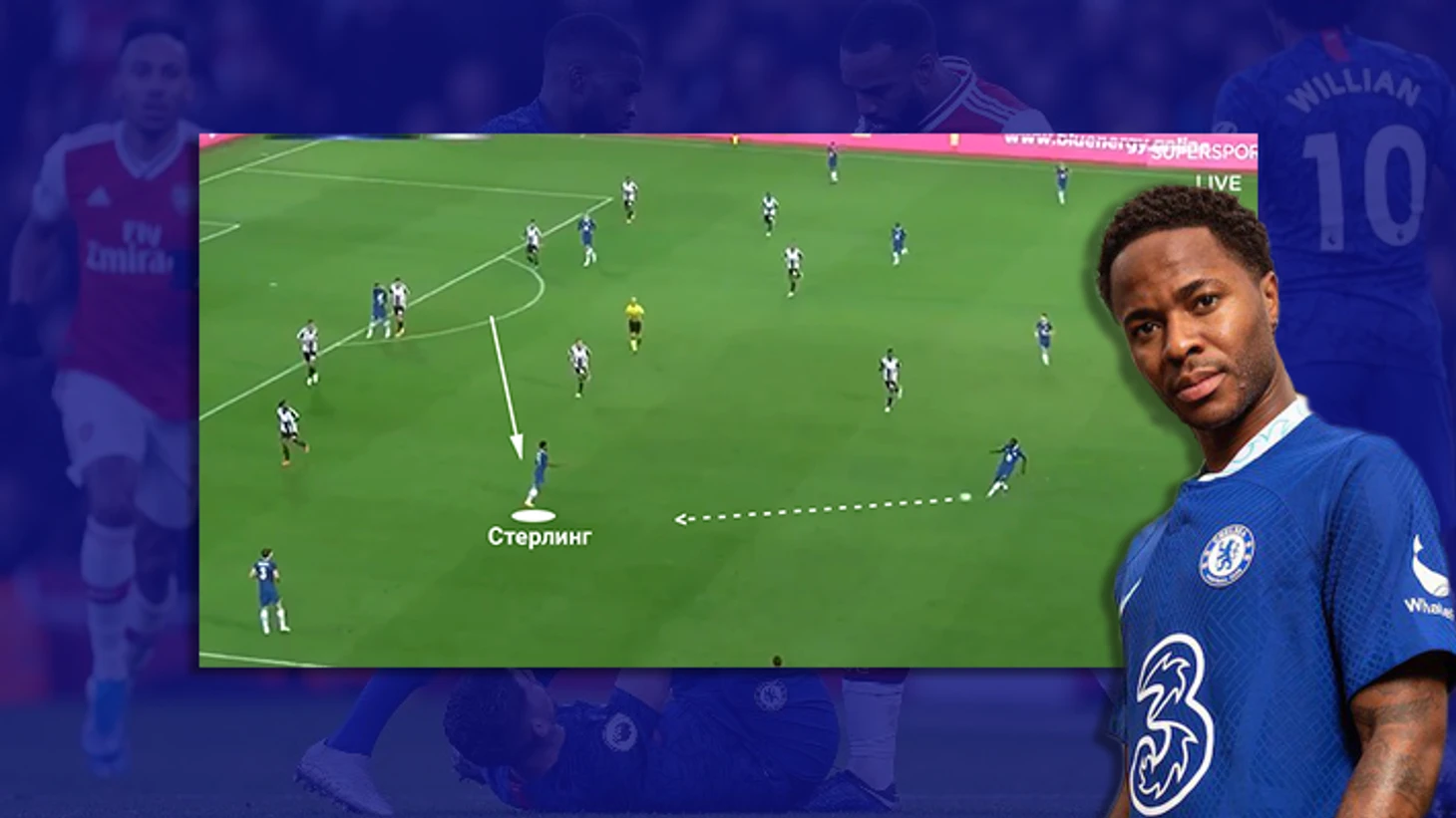 Канониры хорошо растягивали линию защиты Челси, ситуативно имея численное преимущество на фланге. Гол им удалось забить из-за того, что 1)Жоржиньо поздно решил посмотреть себе за спину 2) не стал дорабатывать, т.к. возможно был уверен, что защитников хватит, чтобы нейтрализовать вбегающего Эдегора.