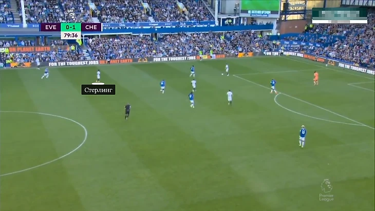 Параллельно «Эвертон» вкусил прессинг. Если в первом тайме ливерпульцы лишь три раза попытались отобрать мяч на чужой половине, то во втором показатель возрос до шести. При этом давление хозяев работало некачественно: «Челси» легко разбивал высокую защиту. Ниже – пример с 80-й минуты, когда игроки Лэмпарда не уследили за классическим смещением Стерлинга.