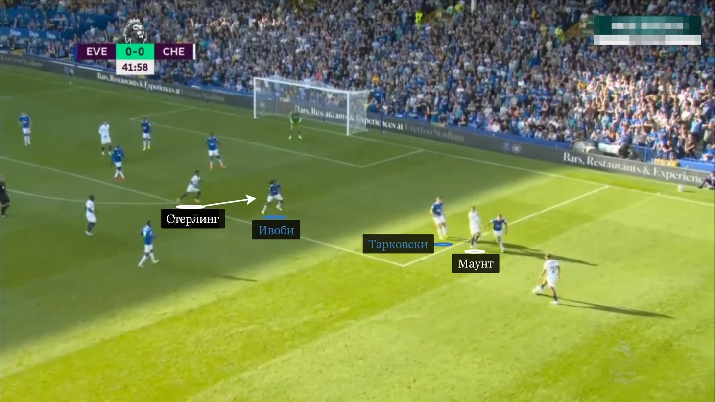 Удар Стерлинга и фол на Чилуэлле пришли из полуфлангов. В перерыве Лэмпард заметил огрех и перекроил защиту «Эвертона». Хозяева перешли на схему 5-4-1: Макнил и Грэй переехали на более глубокие позиции. Абдулай Дукуре и Алекс Ивоби смогли спокойнее опускаться в первую линию и встречать рывки в уязвимые зоны.