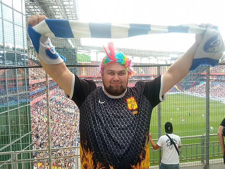 Такой же счастливый гулял по сектору 39-летний Иван с разноцветным париком-ирокезом: