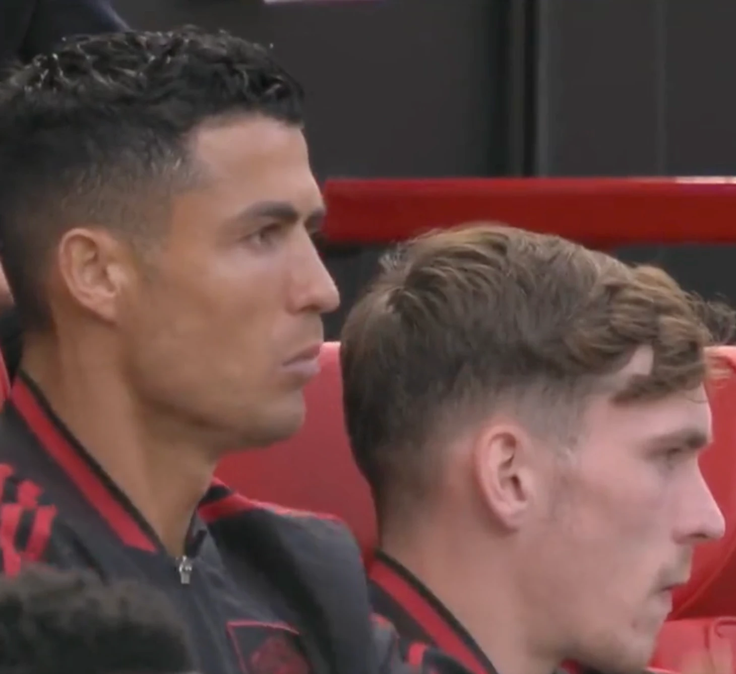 Попало в трансляцию: реакция Криштиану Роналду на пропущенный гол «МЮ». Он сидит на скамейке