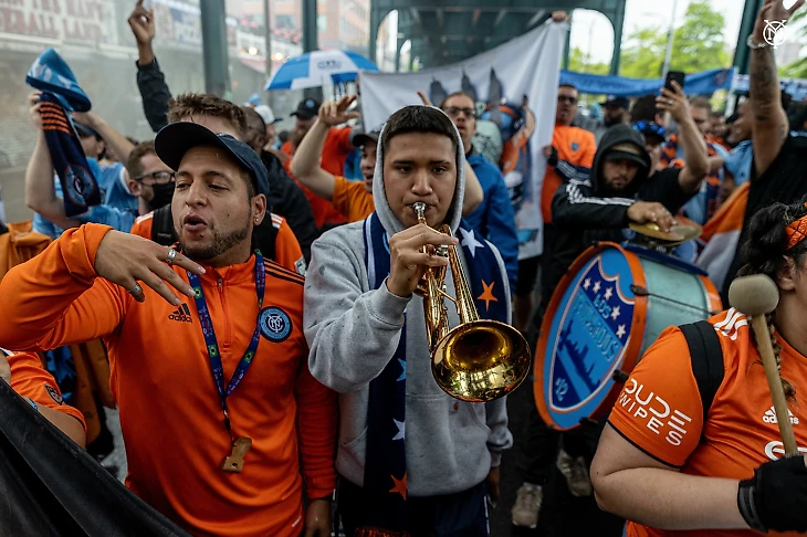 Что касается активной части болельщиков. Да, у ЦСКА отличный сектор болельщиков, который всегда поддерживал команду 90 минут. Но и в США есть это. Немного другой стиль боления, но люди также приходят «на цветах», поддерживают свою команду. Для примера, вот фотографии с матчей «Нью – Йорк Сити», за который и выступал Медина.