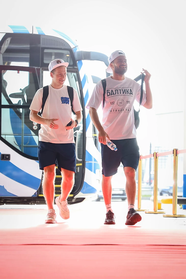 Что касается Калининградской команды, то она приехала на важнейший матч в атрибутике фан-шопа, вышла из автобуса на красную дорожку и устроила импровизированный, модный показ! По-моему, отличное продвижение своего мерча, радует, что такая активность есть и в Первой Лиге.
