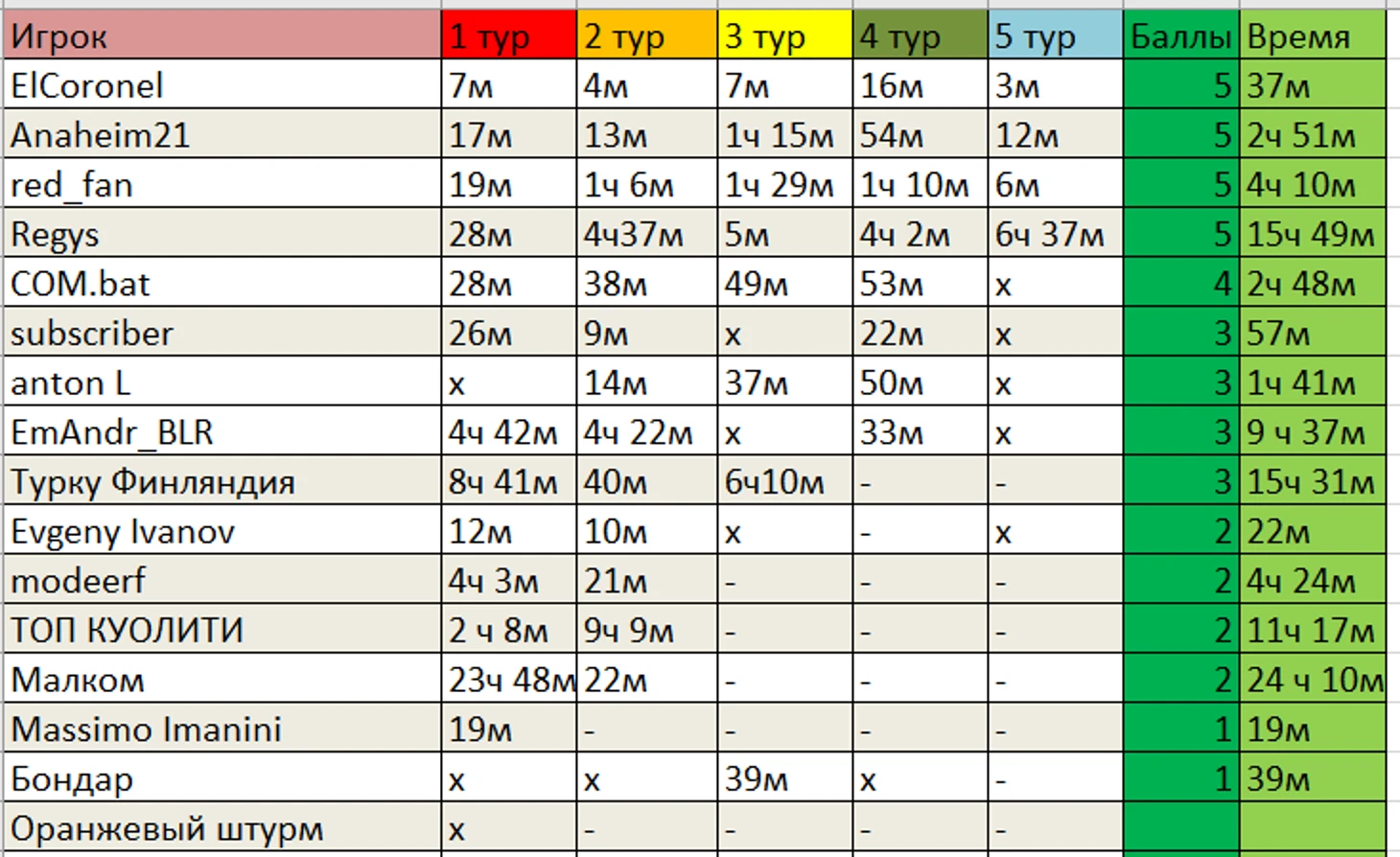 Вот так вот сейчас выглядит табличка с промежуточными итогами после пяти туров: