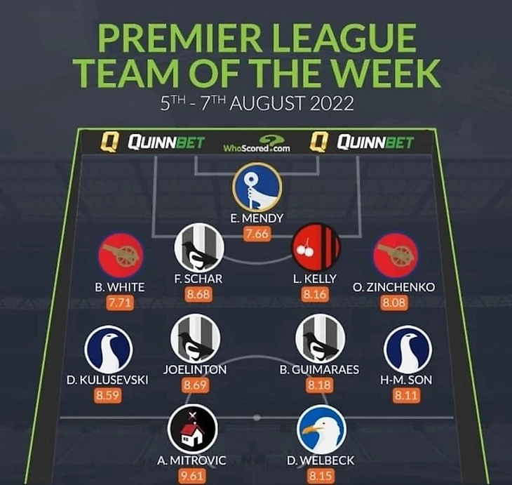 В эту команду попали Аарон Рамсдейл и Вильям Салиба. Оно и не удивительно. Гениальный дебют Салиба в АПЛ и классный матч от Аарона Рамсдейла. Заслуженный сухарь для обоих 💪