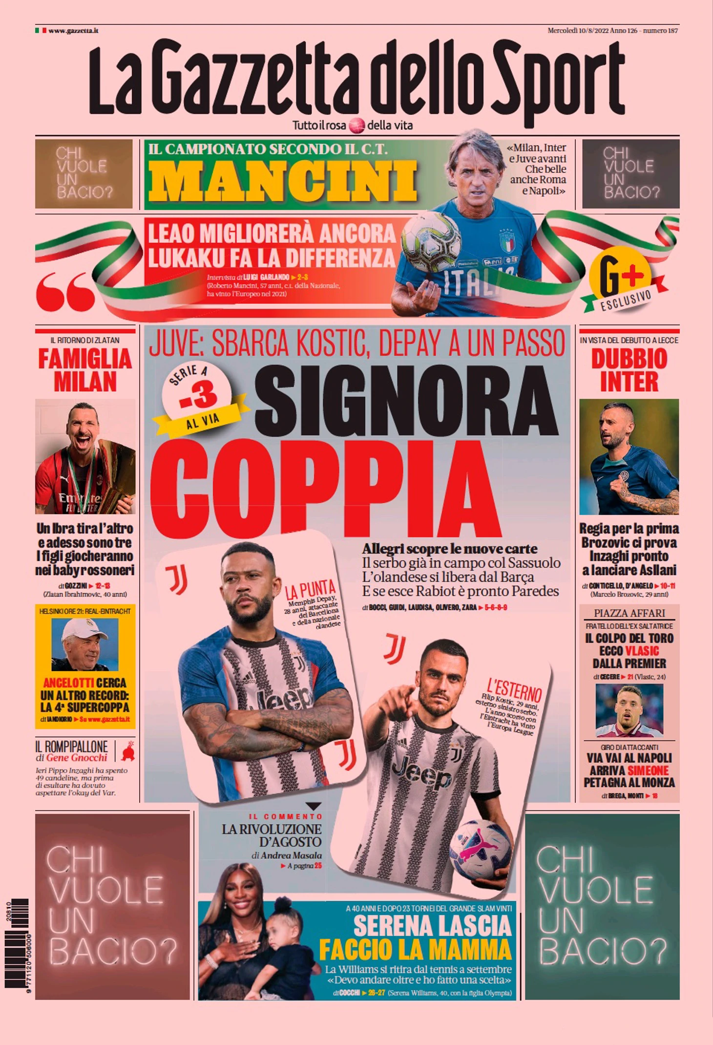 Пара «Синьоры». Заголовки Gazzetta, TuttoSport и Corriere за 10 августа