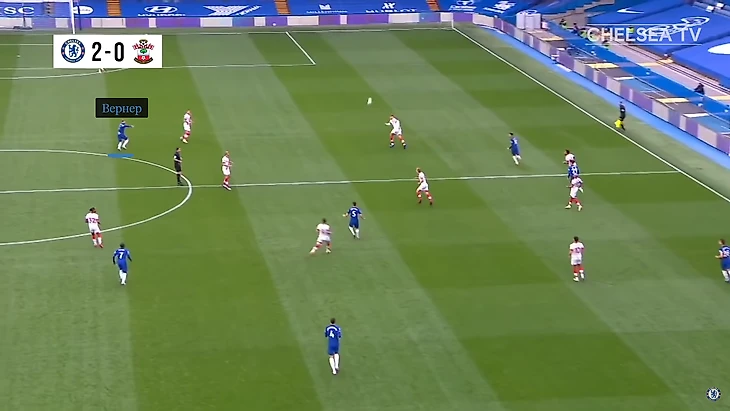 В других эпизодах Вернер удачно ускорялся из-за спин защитников. В домашней игре с «Саутгемптоном»-2020/21 немец открылся под заброс из глубины от Жоржиньо.