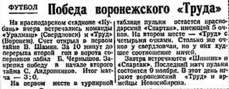 По традиции, поочерёдно переиграв друг друга в сезоне 1965, Труд и Уралмаш расстались надолго. Воронежцы постепенно утратят свои позиции и вновь окажутся в Высшей лиге только став Факелом, а вот Уралмаш в 60-е гг. продолжит свой подъём. И связан он будет с именем, знакомым каждому воронежскому болельщику…