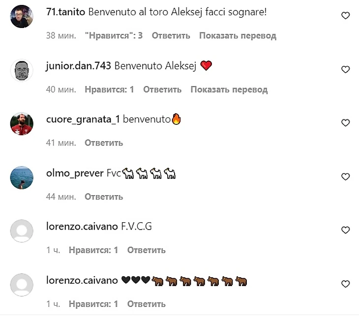 Но фаны «Торино» ждали плеймейкера из России – и завалили его соцсети комментариями:
