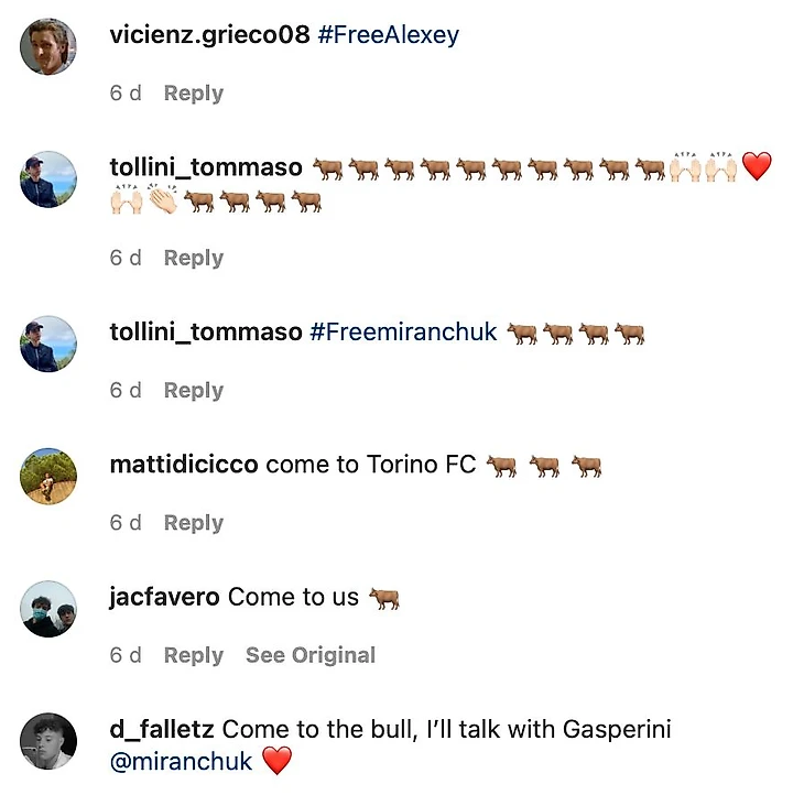 Итальянцы всю неделю оставляли комментарии в соцсетях Миранчука. Перевели, что пишут