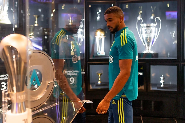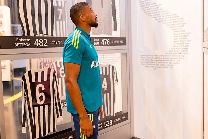 Бразильский защитник «Юве» после пресс-конференции позировал рядом с трофеями и памятными вещами «Ювентуса» и «познакомился» с игровым полем, на котором он будет играть главную роль в этом сезоне.