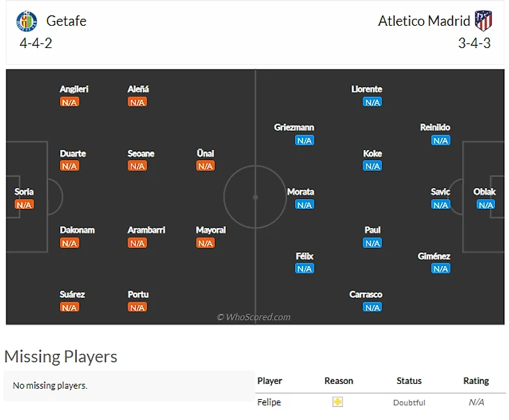 Кроме датчанина, который точно не поедет в Хетафе, индейцы в первом туре рискуют не досчитаться Хименеса(6) и Фелипе(6). У обоих оборонцев есть повреждения и их могут поберечь.