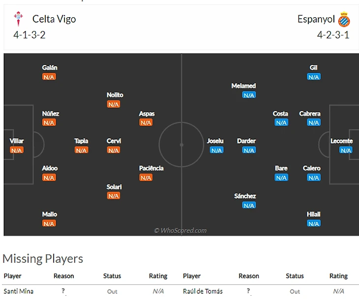 Впрочем, уход азиатского вингера -это не самая главная проблема гостей. Там до сих пор не ясно, получится ли у попугаев сохранить в составе свою главную звезду - Рауля Де Томаса(8). Ясно что первый тур форвард пропустит, а что случится до закрытия трансферного окна - неизвестно никому. Кроме Рауля не поедет в Виго травмированныt Педроса(5,5) и Пуадо(7) , также под вопросом участие в матче не совсем здорового Эмбарбы(6,5)
