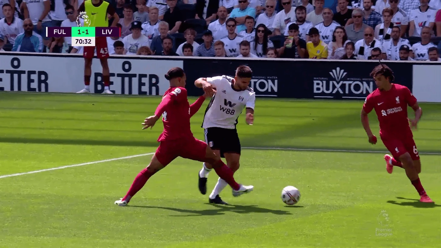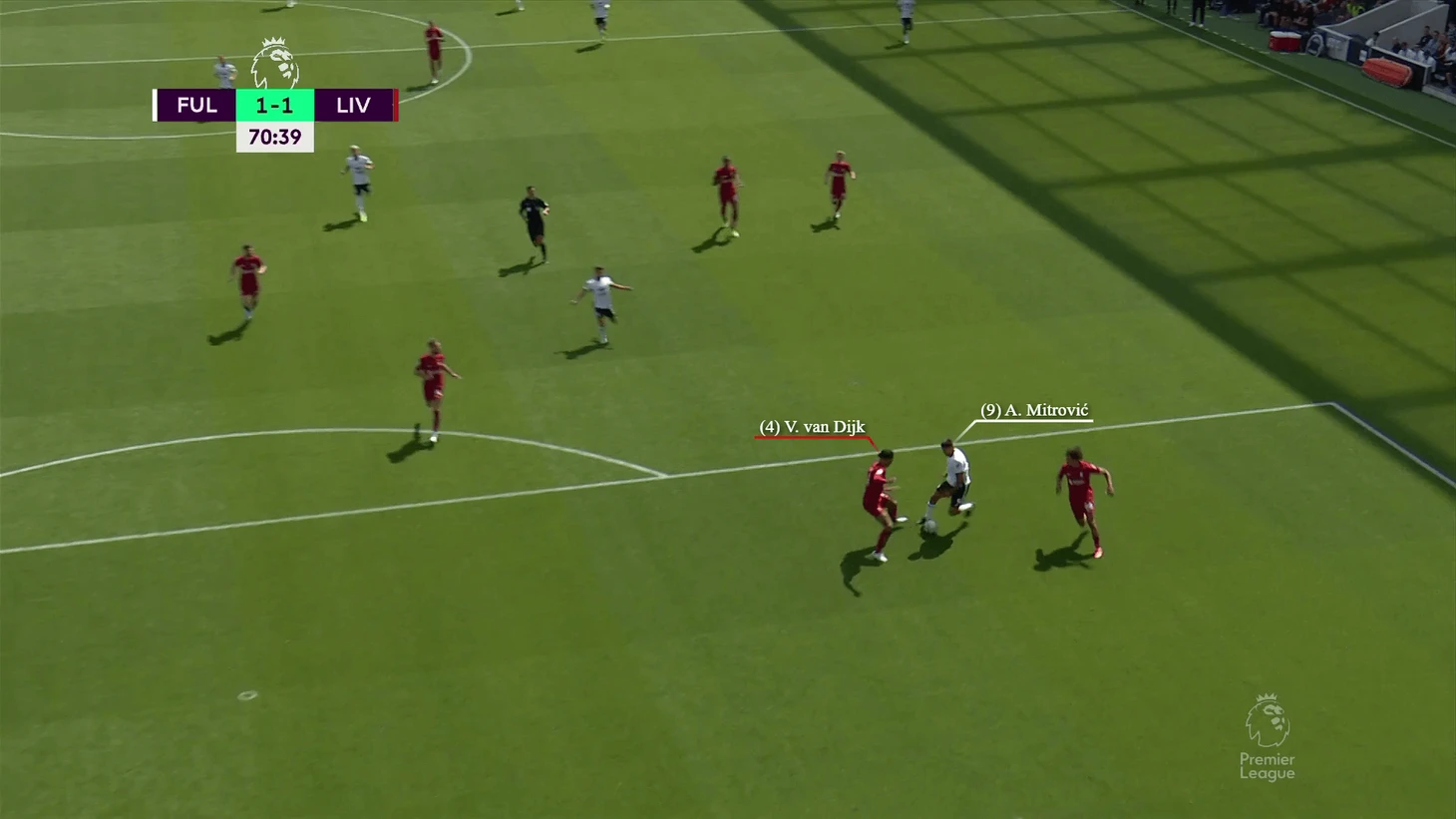 Против Митровича Ван Дейк потерпел редкое поражение, осознав это в середине своей попытки войти в единоборство, но слишком поздно, вступив в контакт с нападающим «Фулхэма», пытаясь убрать ногу с пути нападающего.