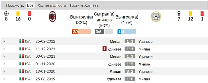 Очень неудобный соперник для Милана Удинезе. В 6 последних встречах "россонери" победили лишь дважды. Победа была добыта в 2020 году, с победным голом Ибрагимовича через себя. К слову, три последних матча заканчивались вничью, 1-1. Легкой прогулки точно ждать не стоит, тем более начало чемпионатов гораздо на сюрпризы.