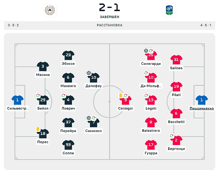 Схема, по которой играет Удинезе, кажется постоянной, кто бы ни рулил командой. При Чоффи была 3-5-2, при Соттиле такая же. Логично, ведь исполнители команды за это лето не особо изменились.