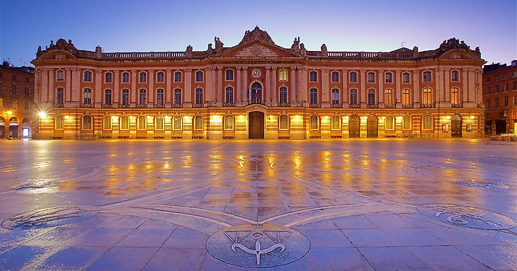 Капитолий — самое главное здание города, его визитная карточка. Расположен на одноимённой площади и представляет собой архитектурный комплекс, в котором сегодня размещаются мэрия и Национальный театр. Первоначальное здание Капитолия, построенное в 1190 году, в течение шести веков служило резиденцией городского правительства Тулузы. Здание было реконструировано в 1750 году в неоклассическом стиле и сегодня впечатляет туристов 128-метровым фасадом из белого камня и розового кирпича, 29 арками и 8 мраморными колоннами.