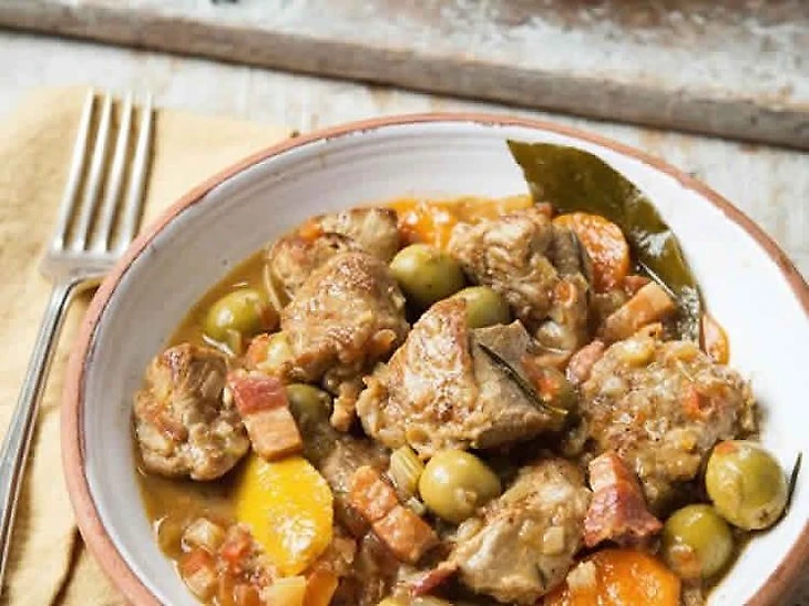 Популярное тушеное мясо медленного приготовления, с нежной телятиной, оливками, помидорами, луком и зеленью из маквиса, а также с щедрой порцией белого или розового вина.