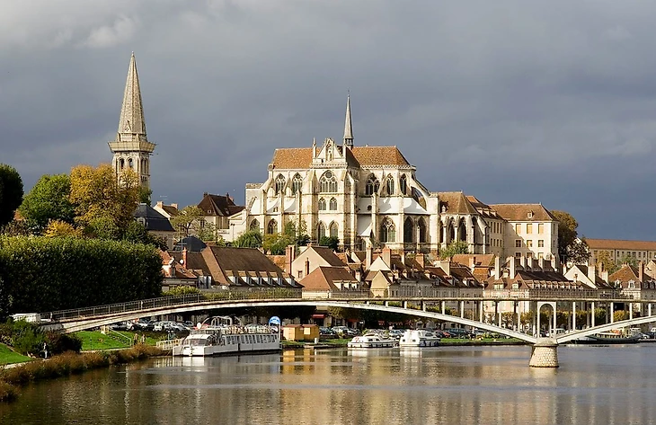 Auxerre (Осер), судоходный порт на Йонне и начальная точка Нивернского канала, также является столицей Нижней Бургундии, холмистого региона с плато, покрытыми полями и лесами, и открытыми склонами, обрамленными виноградными лозами и фруктовыми деревьями. Осер, где вырос кадет Руссель, известен своей футбольной командой, которой на протяжении многих лет славно руководил невыразимый Ги Ру. В Осере есть замечательный собор и, наконец, что не менее важно, престижное аббатство Сен-Жермен, где хранятся одни из старейших фресок Франции. Это довольно большой город с населением около 35 тыс.