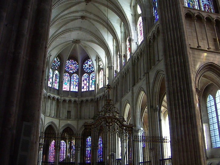 Готическое здание с красивым ярким фасадом, построенное между 13 и 16 веками. Вокруг амбулатории — великолепный ансамбль витражных медальонов 15 — 16 веков, в которых преобладают синие и красные цвета. Романский склеп, все, что осталось от первоначального романского собора, хранит некоторые известные фрески 11-13 веков, в том числе чрезвычайно редкую картину Христа верхом на лошади. Коллекция Сокровищницы включает «Снятие с креста» Луки Пенни, написанное на сланце, выемчатую эмаль, Часовые книги, миниатюры и триптихи из слоновой кости.