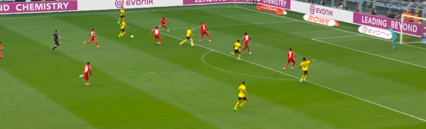 Если коротко, то вскрыть оборону Боруссии можно, выманив игроков ближе к флангу, освободив свободную зону на противоположной полуфланге.