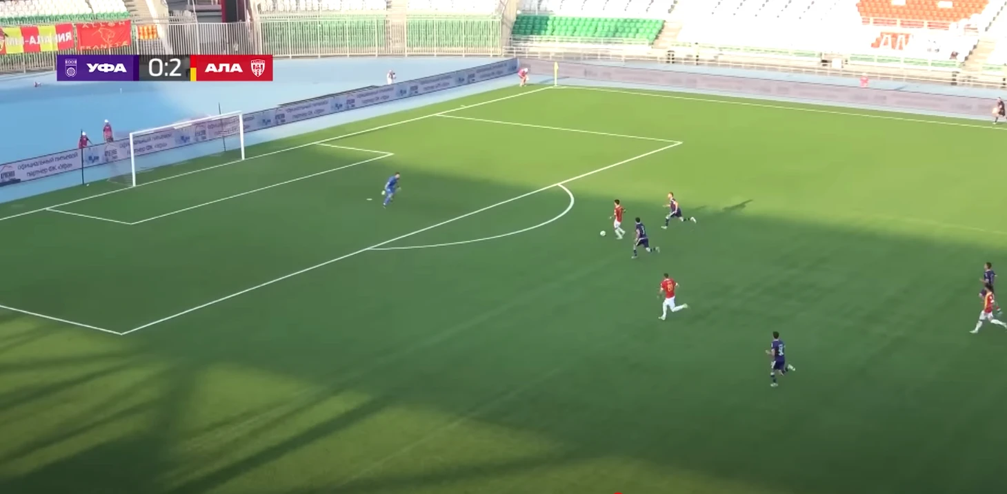 Но вообще «Алании» все же было тяжелее. На скрине видно, что тени падают под углом к воротам Солдатенко (после перерыва они будут уже перпендикулярны полю). Вероятно, во время выбора сторон в начале игры владикавказцы не угадали с монеткой. Да-да, так бывает. Когда ты все вроде бы выбрал и определил, но судья бросает монетку – и ворота выбирает соперник.
