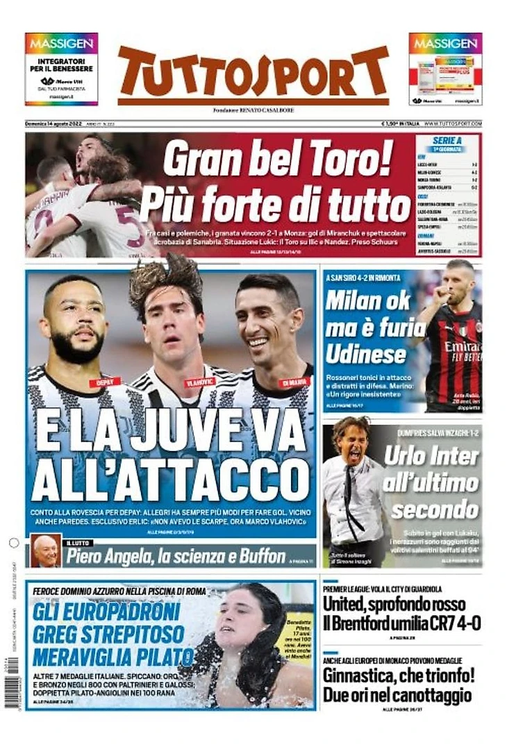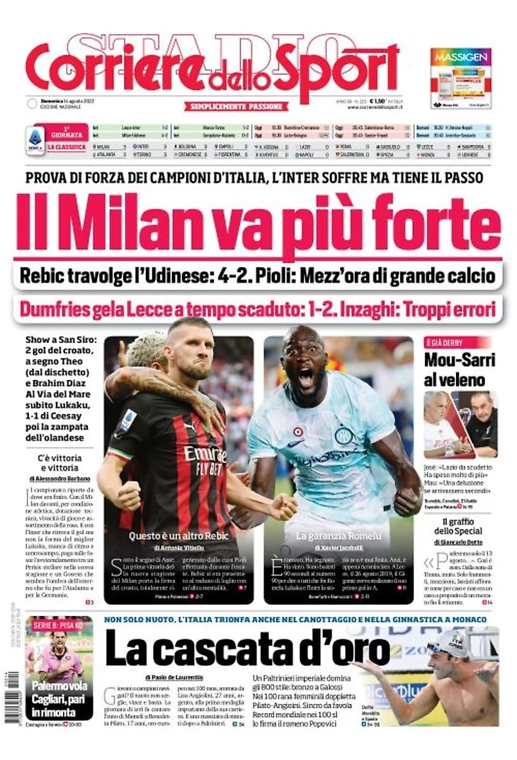 «Милан» становится сильнее. Заголовки Gazzetta, TuttoSport и Corriere за 14 августа