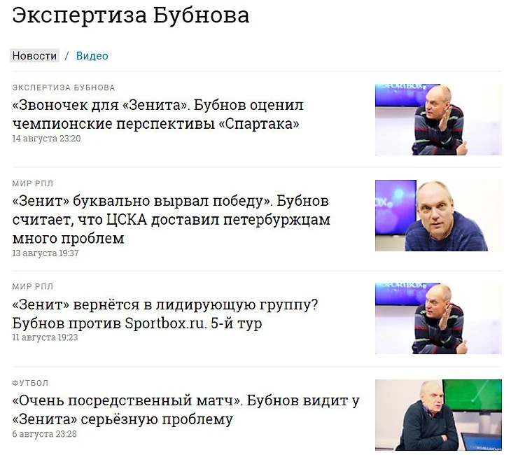 – Не знаю. На сайте этой рубрики нет. У нас есть рубрика «Бубнов против Sportbox», где он перед каждым туром РПЛ дает прогнозы на все матчи, и с ним соревнуется один из сотрудников. И есть межсезонные рубрики, где он выделяет лучших и худших футболистов и тренеров, подводит итоги.