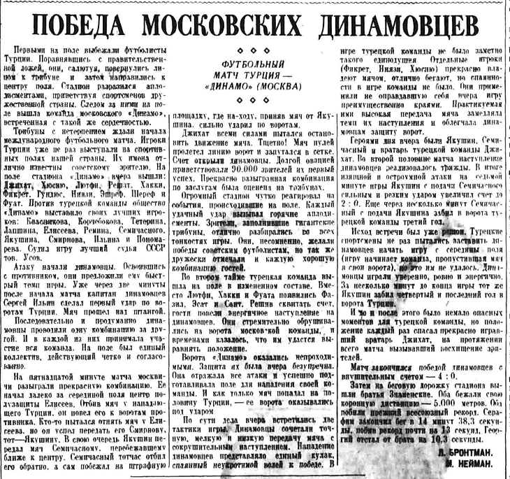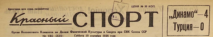 18-19 сентября 1936 год. «Динамо«(Москва) - сборная народных домов Турции и результат забытого прессой московского дерби