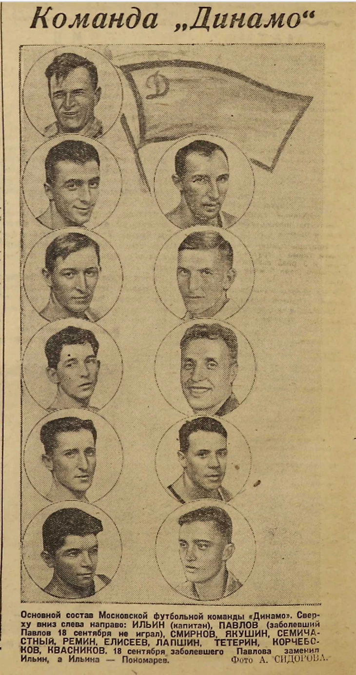 "Динамо" Москва: Квасников, Тетерин, Корчебоков; Лапшин, Елисеев, Ремин; Семичастный, Якушин, Смирнов, Ильин (К), А.Пономарев.