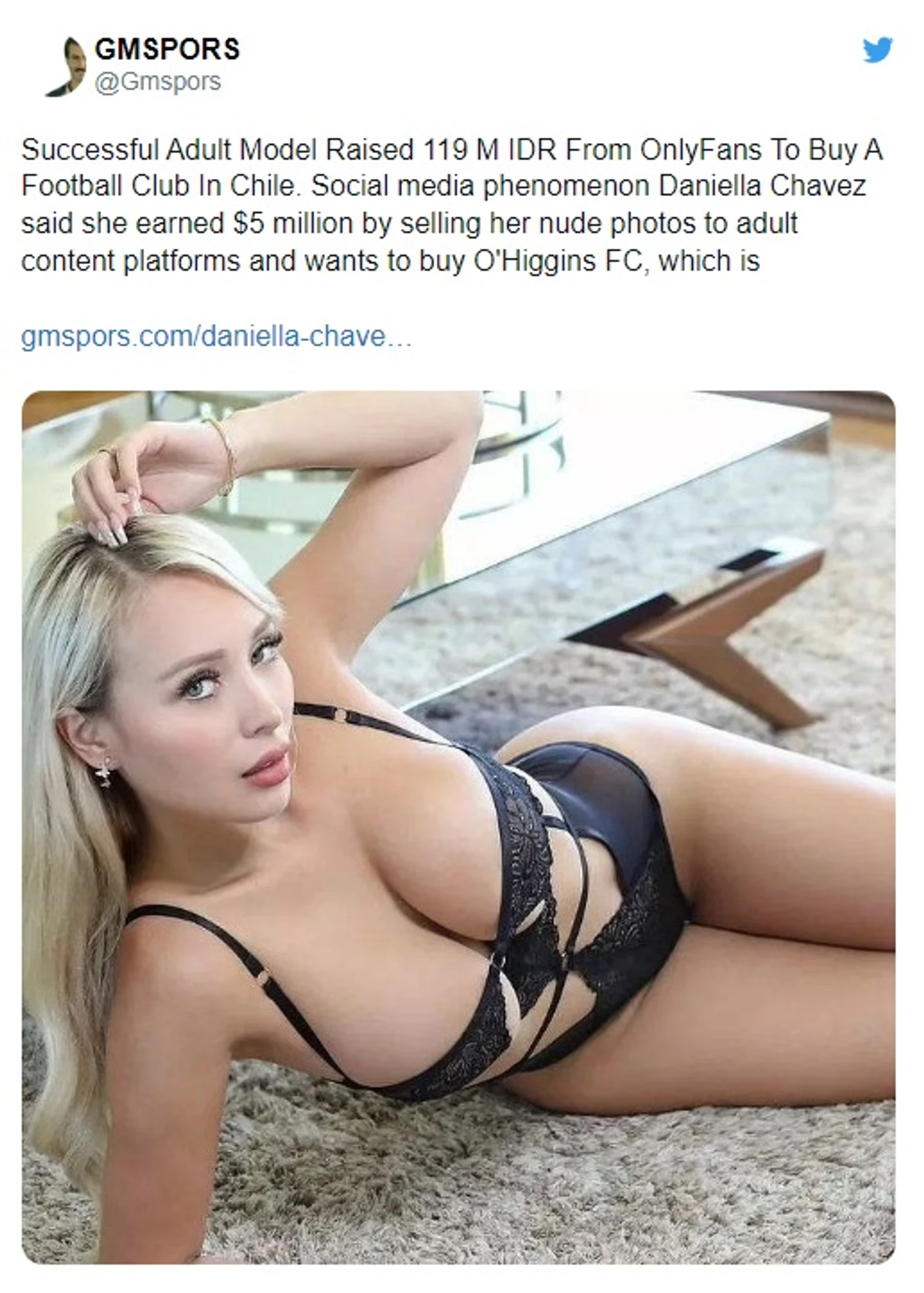 Даниэлла Чавес стала известна попыткой купить чилийский клуб O'Higgins, собрав деньги со своего счета в аккаунте на OnlyFans. Она привлекла 119 миллионов долларов на покупку футбольного клуба в Чили, в том числе 5 миллионов за свои обнаженные фотографии платформам с контентом для взрослых.