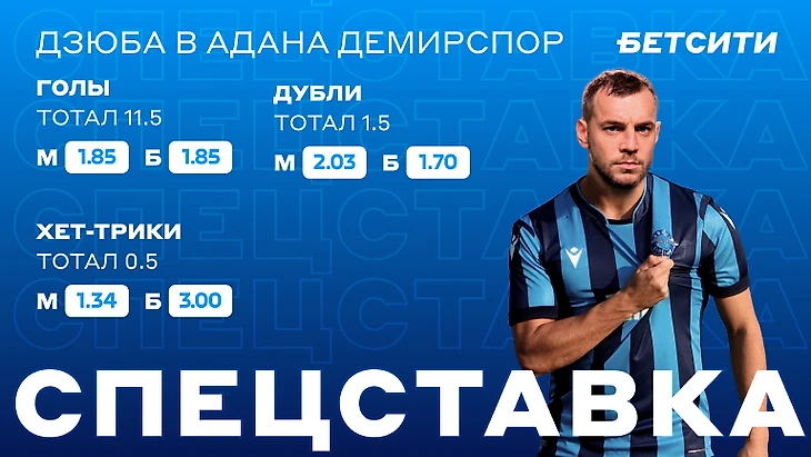 Сделать ставки на итоги выступления Артема Дзюбы в турецком чемпионате вы можете на сайте или в приложении БЕТСИТИ.