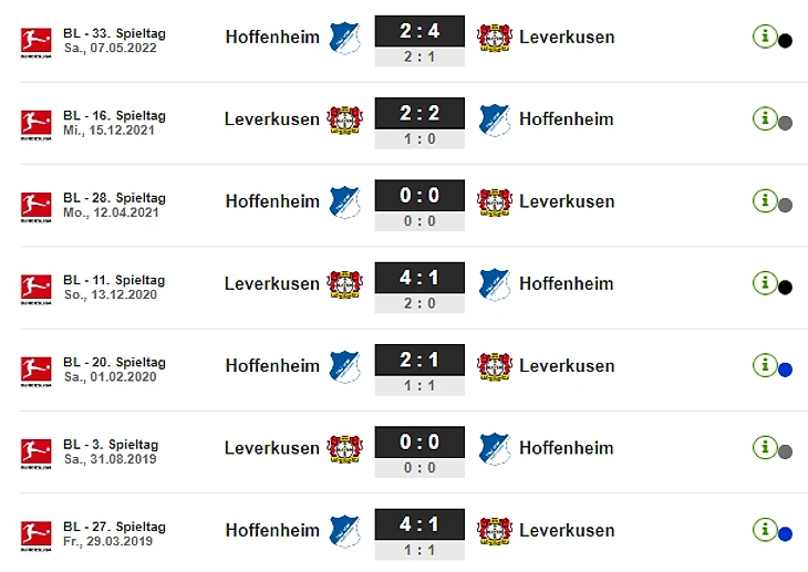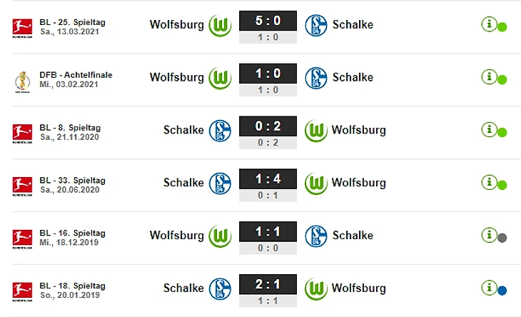 Последние очные встречи (здесь и далее fussballdaten.de)