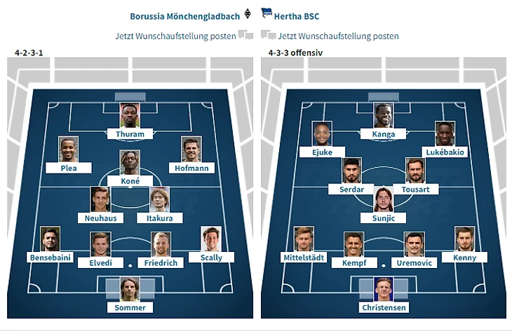 Ориентировочные составы (версия Bundesliga.com):