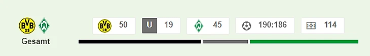 Дортмунд не проиграл Бремену в последних семи матчах ( четыре победы, три ничьих), одержав в трех последних игры подряд победу.