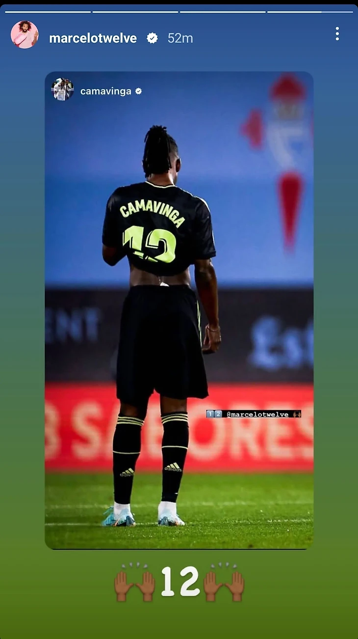 После победы «Реала» над «Сельтой» полузащитник сливочных Эдуардо Камавинга выложил фотографию - на ней изображен сам футболист в футболке под номером 12. Раньше этот номер принадлежал Марсело, когда тот выступал за королевский клуб.